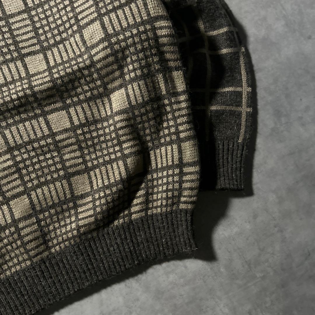 ヴィンテージ ベージュ ブラウン チェック モックネック レトロ ニットセーター
