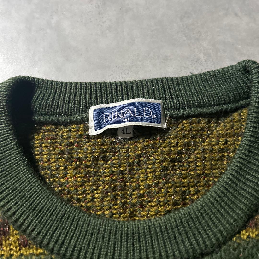 ヴィンテージ RINALD 幾何学模様 ウール レトロ デザイン ニットセーター