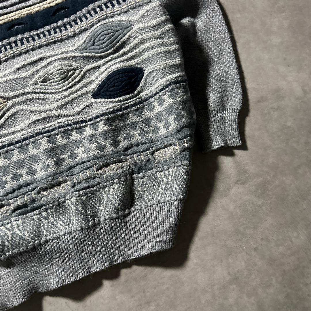 ヴィンテージ 3D モノトーン 立体 ケーブル 幾何学 模様 ニット セーター