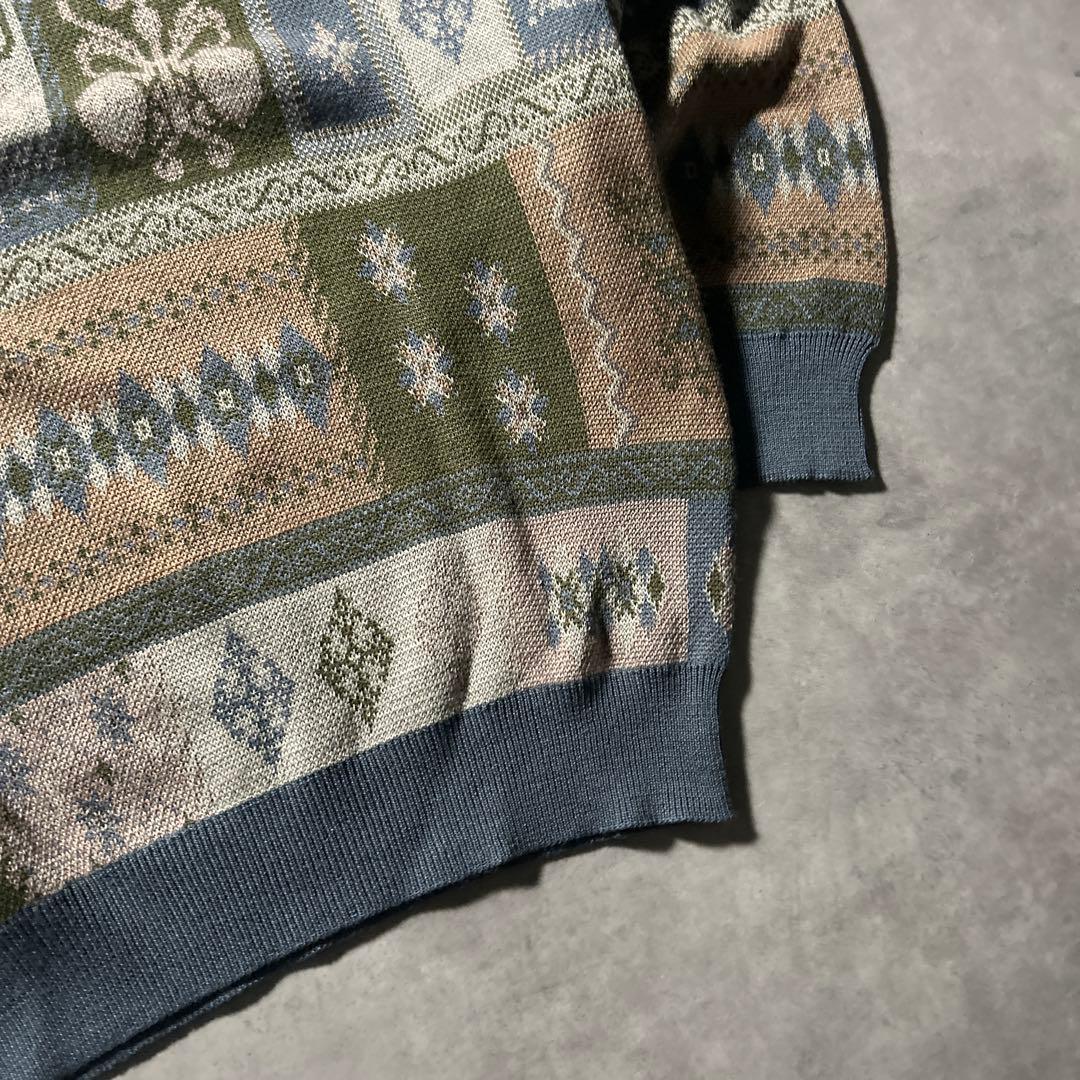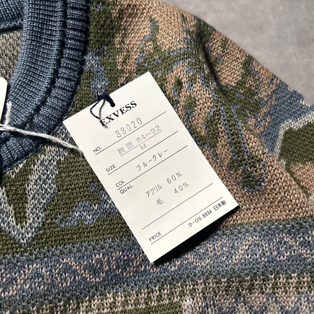 EXVESS ヴィンテージ 幾何学 模様 レトロ ブルー ニット セーター