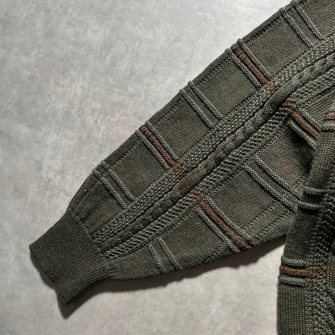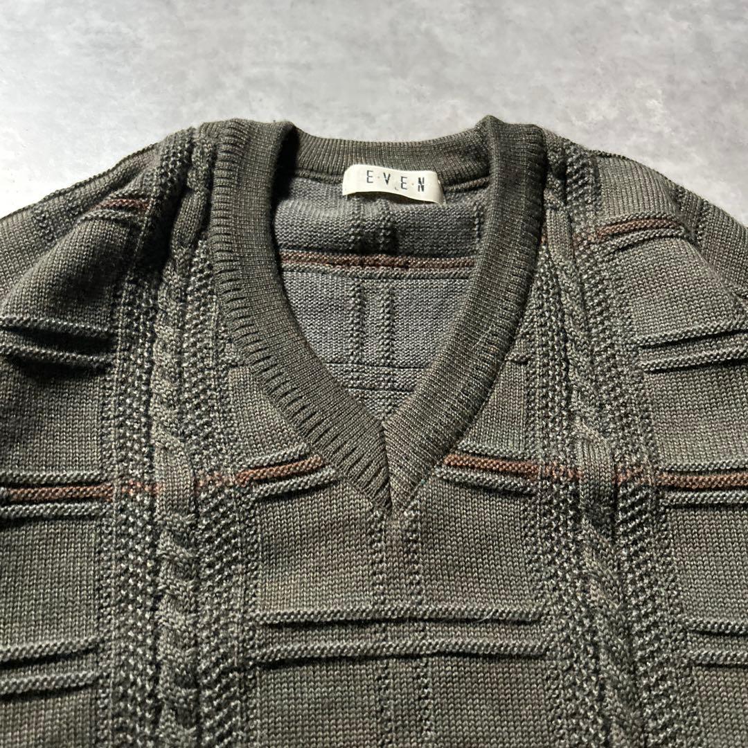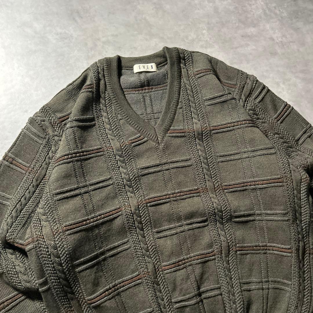 EVEN ヴィンテージ ケーブル カーキ Vネック ニット セーター