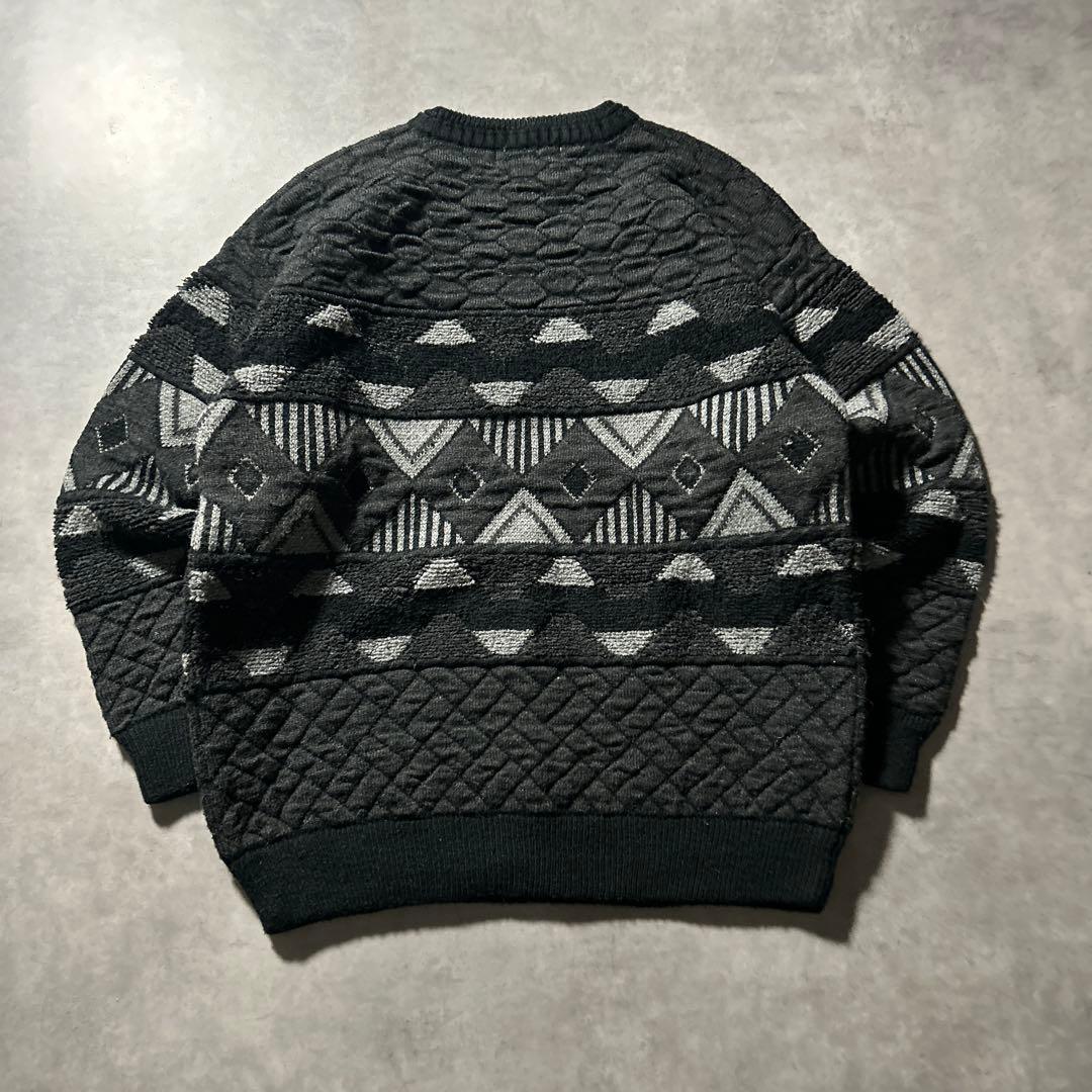 NINGTENG ブラック モノトーン モード 肉厚 レトロ ニット セーター