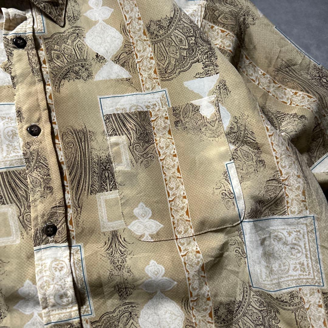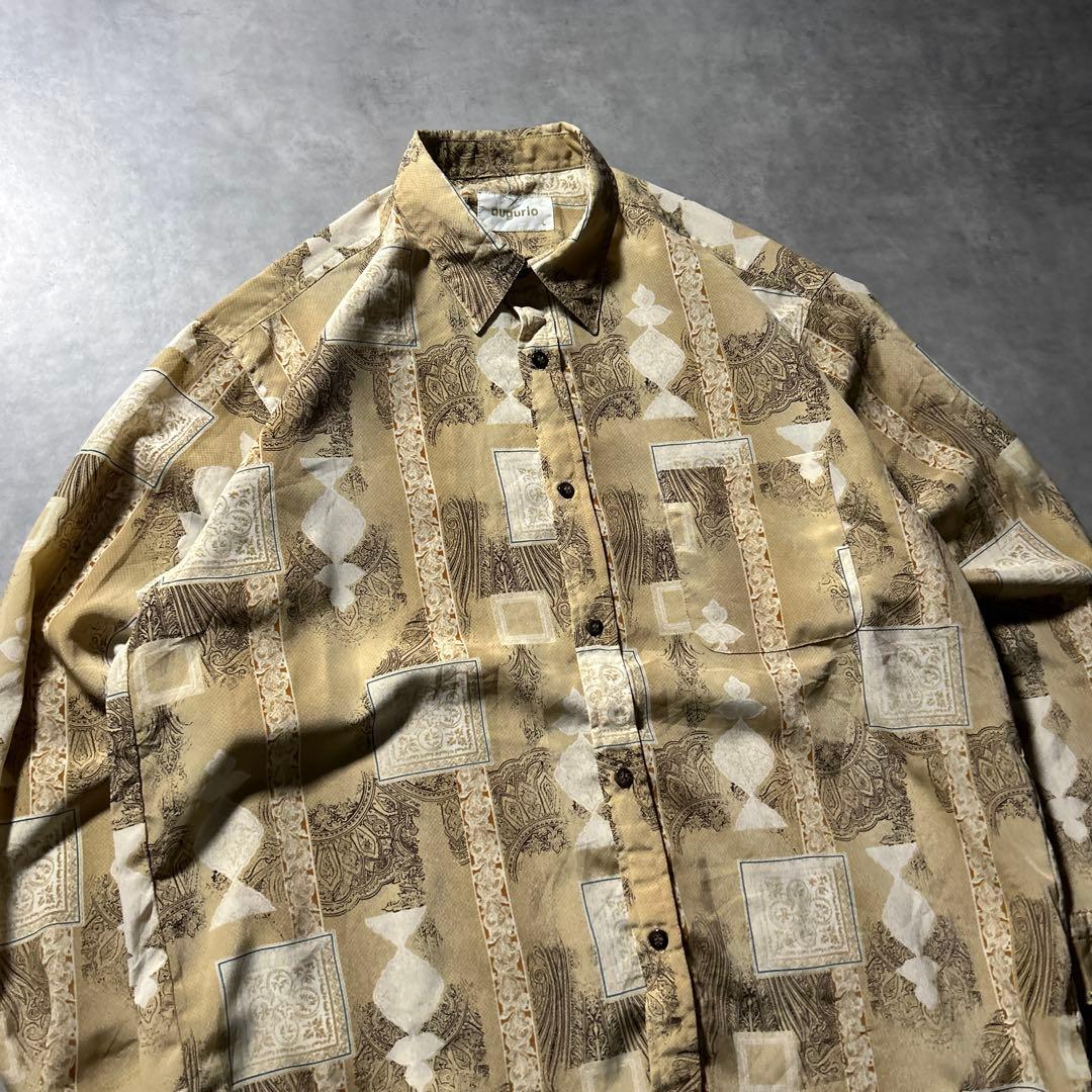 ヴィンテージ イエロー ヨーロピアン アートパターン 長袖 デザイン シャツ