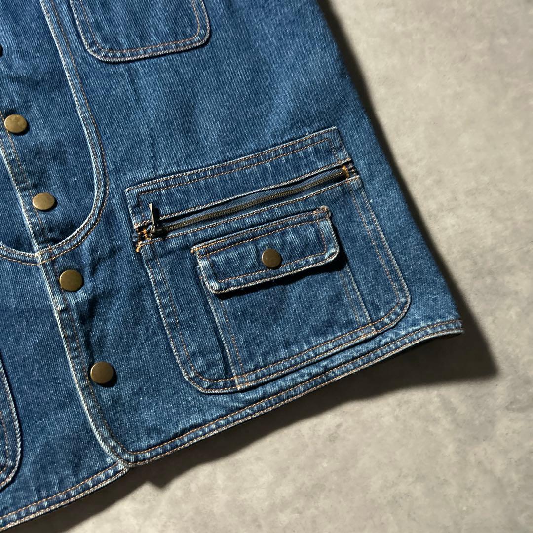 ヴィンテージ デニム スナップボタン マルチポケット ベスト ハンティング