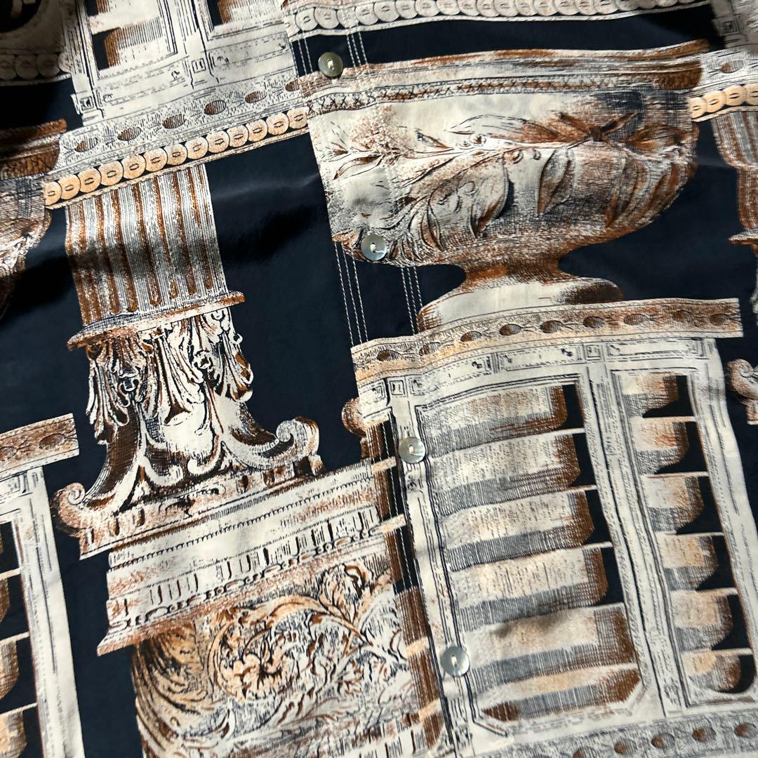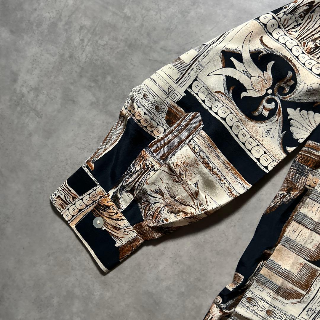 ヴィンテージ 総柄 シルク オープンカラー レトロ ヨーロピアン シャツ