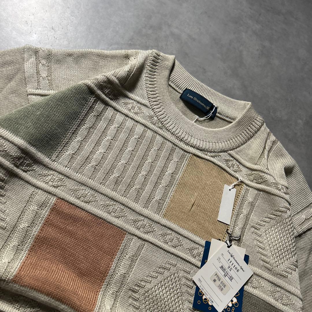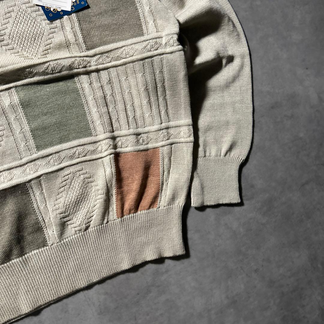 ヴィンテージ チェック 幾何学 3D レトロ ベージュ ニット セーター