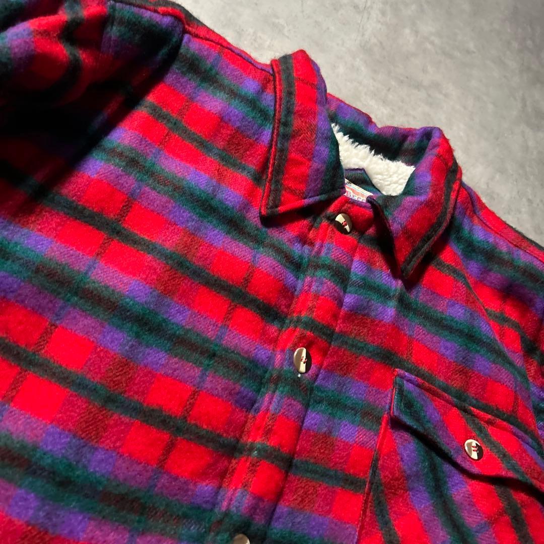 ヴィンテージ チェック マルチポケット ボア ネルシャツ ジャケットカバーオール