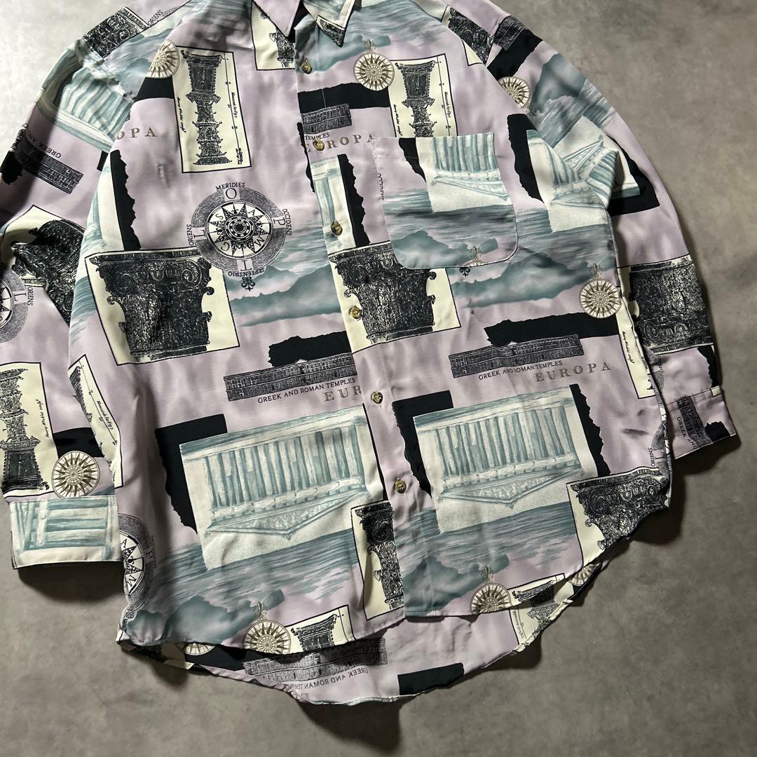 ヴィンテージ 総柄 レトロ アートパターン 菅田将暉 幾何学 デザイン シャツ