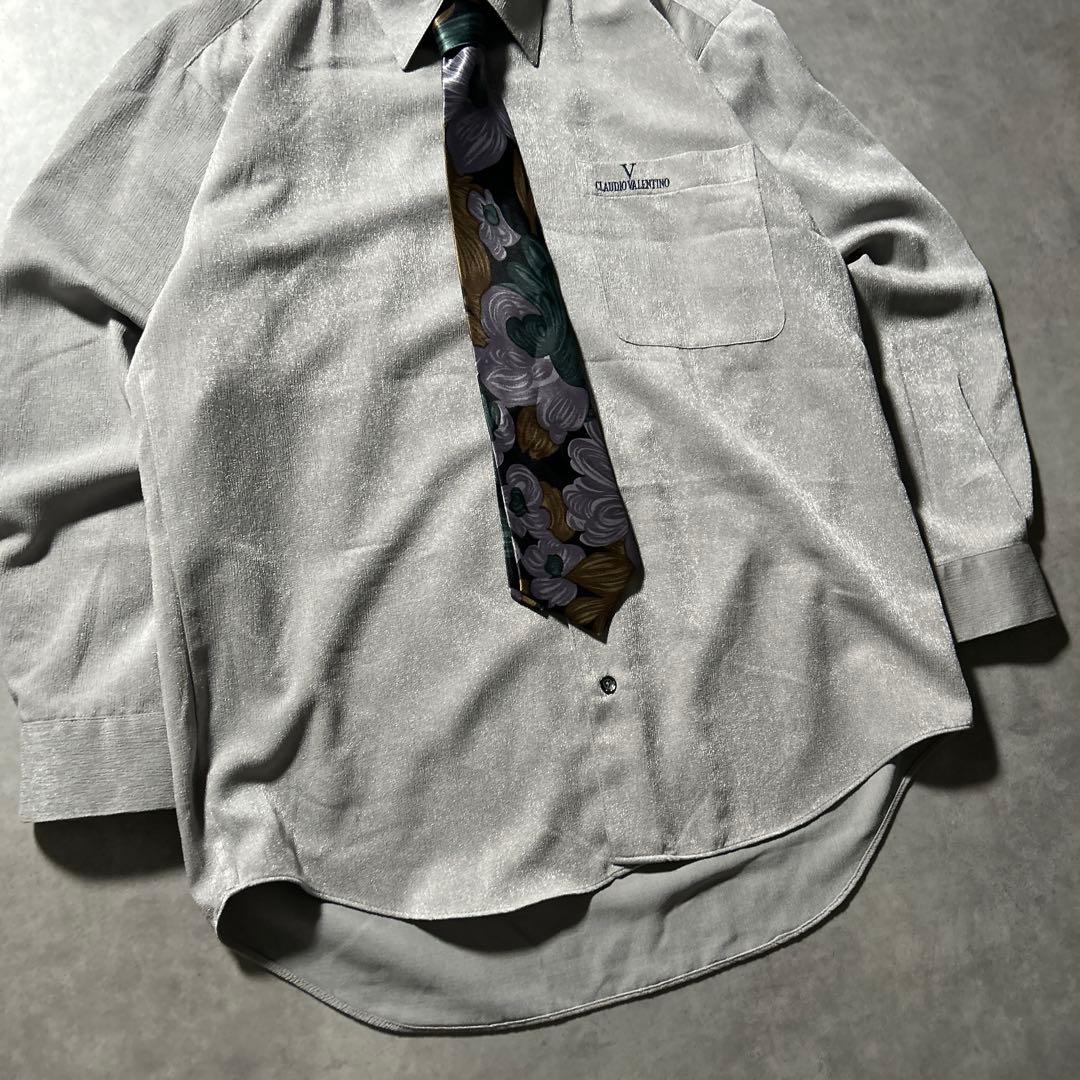 グレー 総柄 花柄 レトロ ヨーロピアン デザイン ネクタイ シャツ セット
