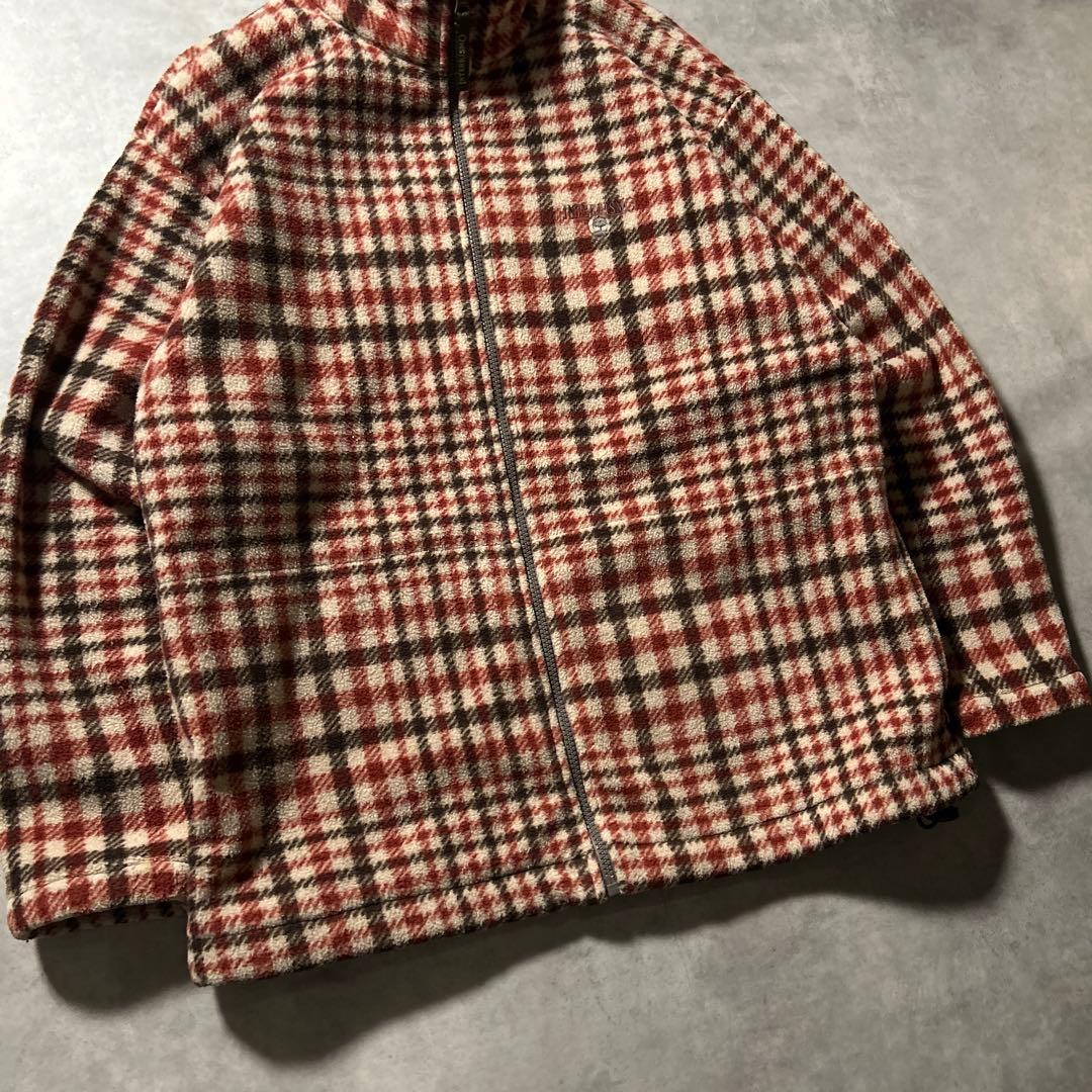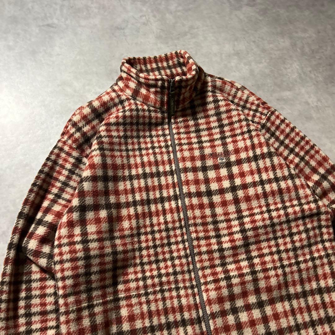 ヴィンテージ ジップアップ チェック フリース レトロ ボア ジャケット