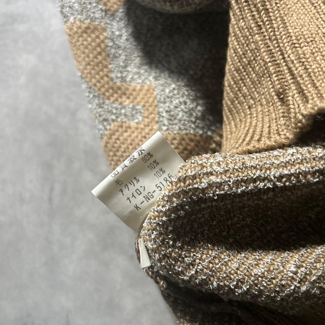 ヴィンテージ レトロ ベージュ 幾何学 総柄 アートパターン デザインニット