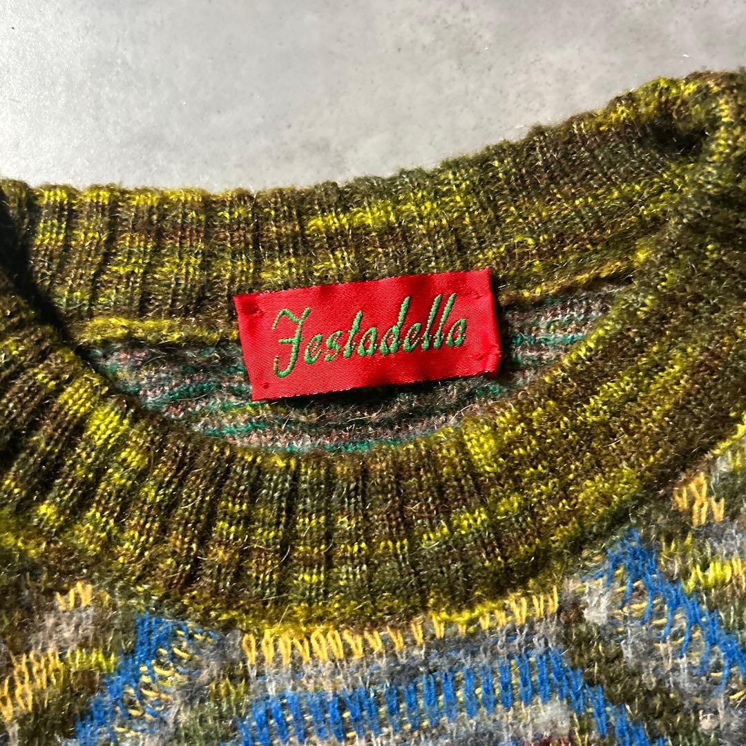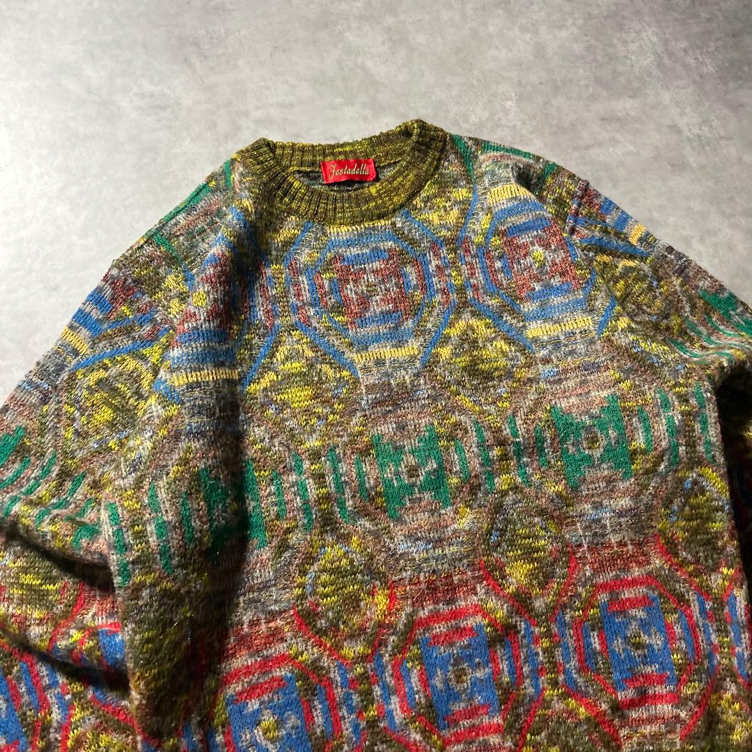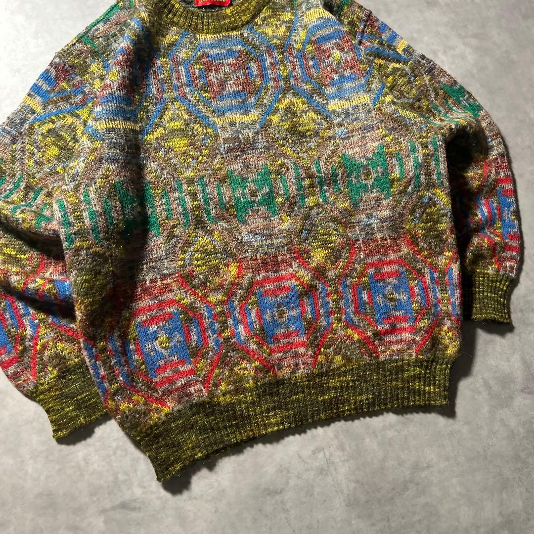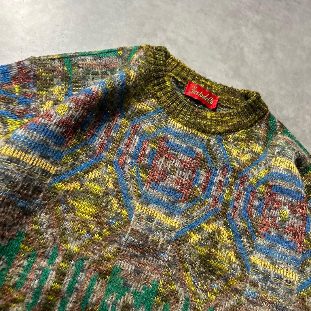 ヴィンテージ イタリア製 モヘア ウール レトロ 総柄 ニット セーター