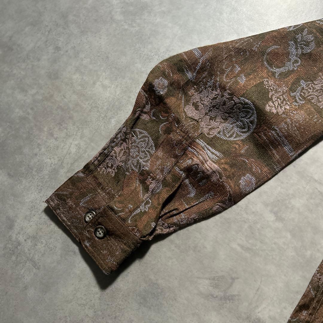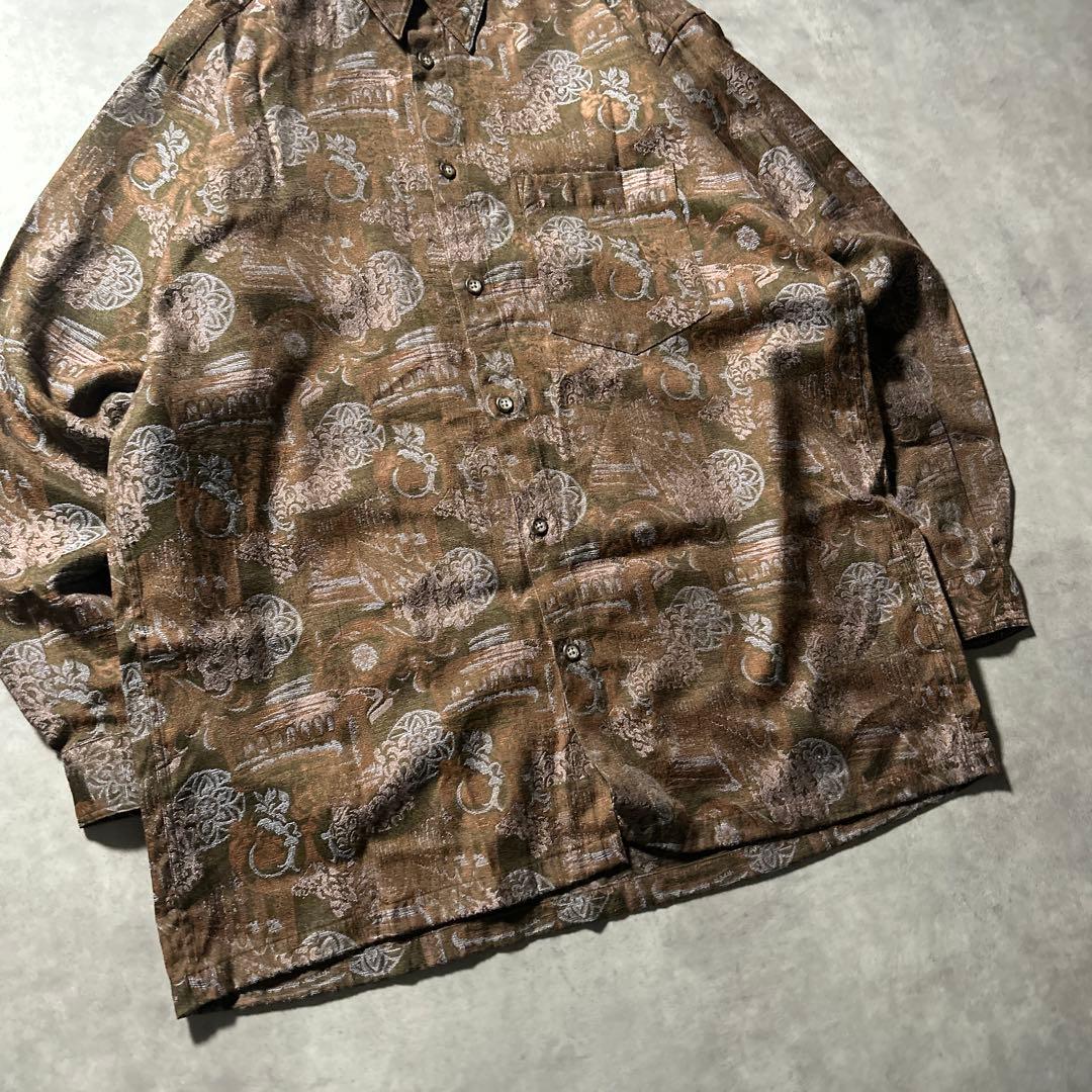 ヴィンテージ 総柄 ブラウン レトロ アートパターン デザイン レトロ シャツ