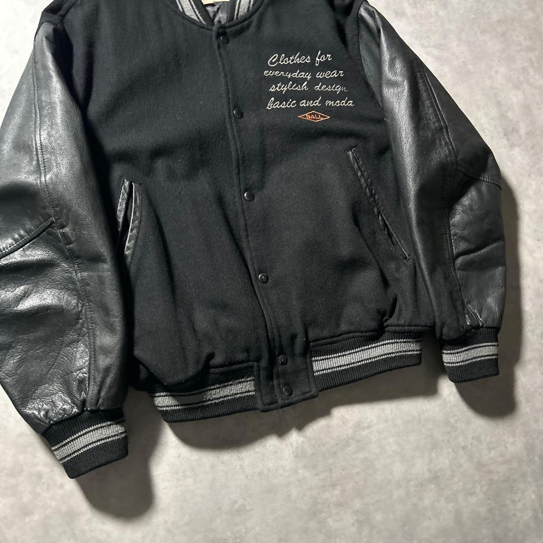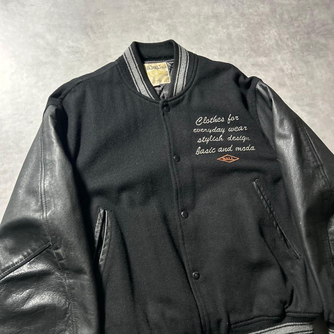 BALL BASIC ブラック レザー 刺繍 カレッジロゴ デザイン スタジャン