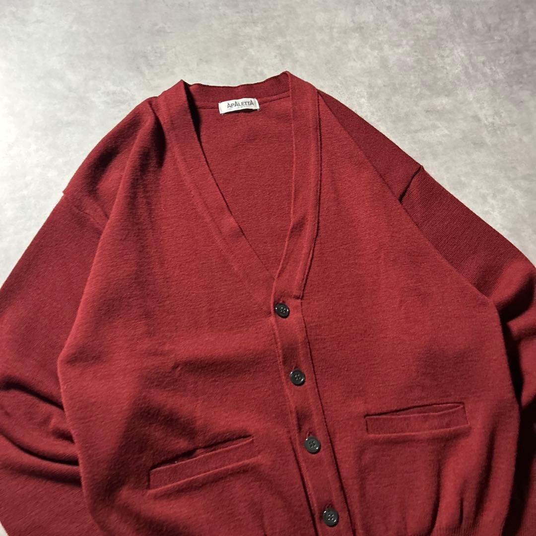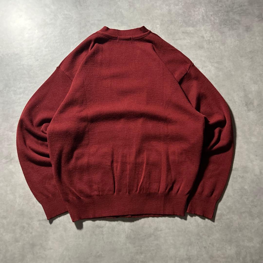 ヴィンテージ アクリル レッド ニット カーディガン マルチポケット レトロ