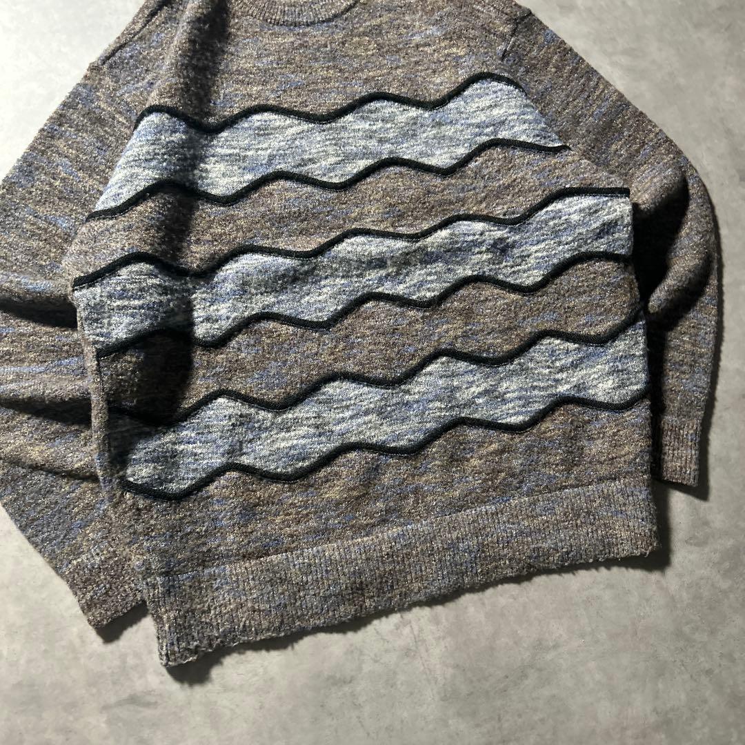 ヴィンテージ ベージュ 3D 幾何学 模様 レトロ デザイン ニット セーター
