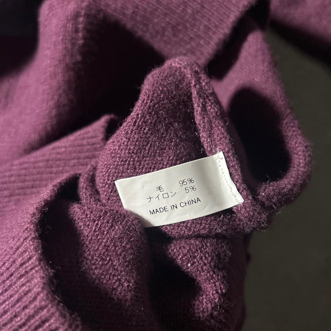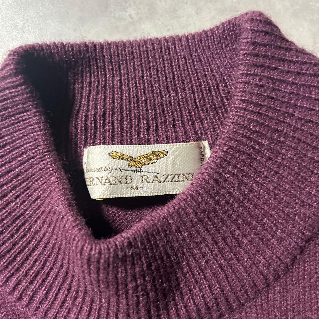ヴィンテージ パープル ワンポイント ロゴ モックネック アートパターン ニット