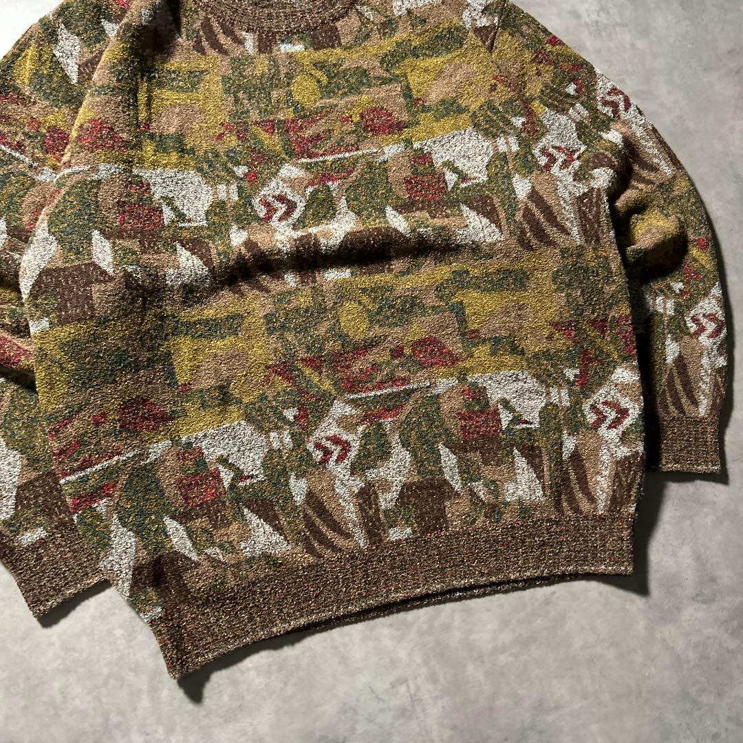 ヴィンテージ 総柄 レトロ 幾何学 模様 アートパターン ニット セーター