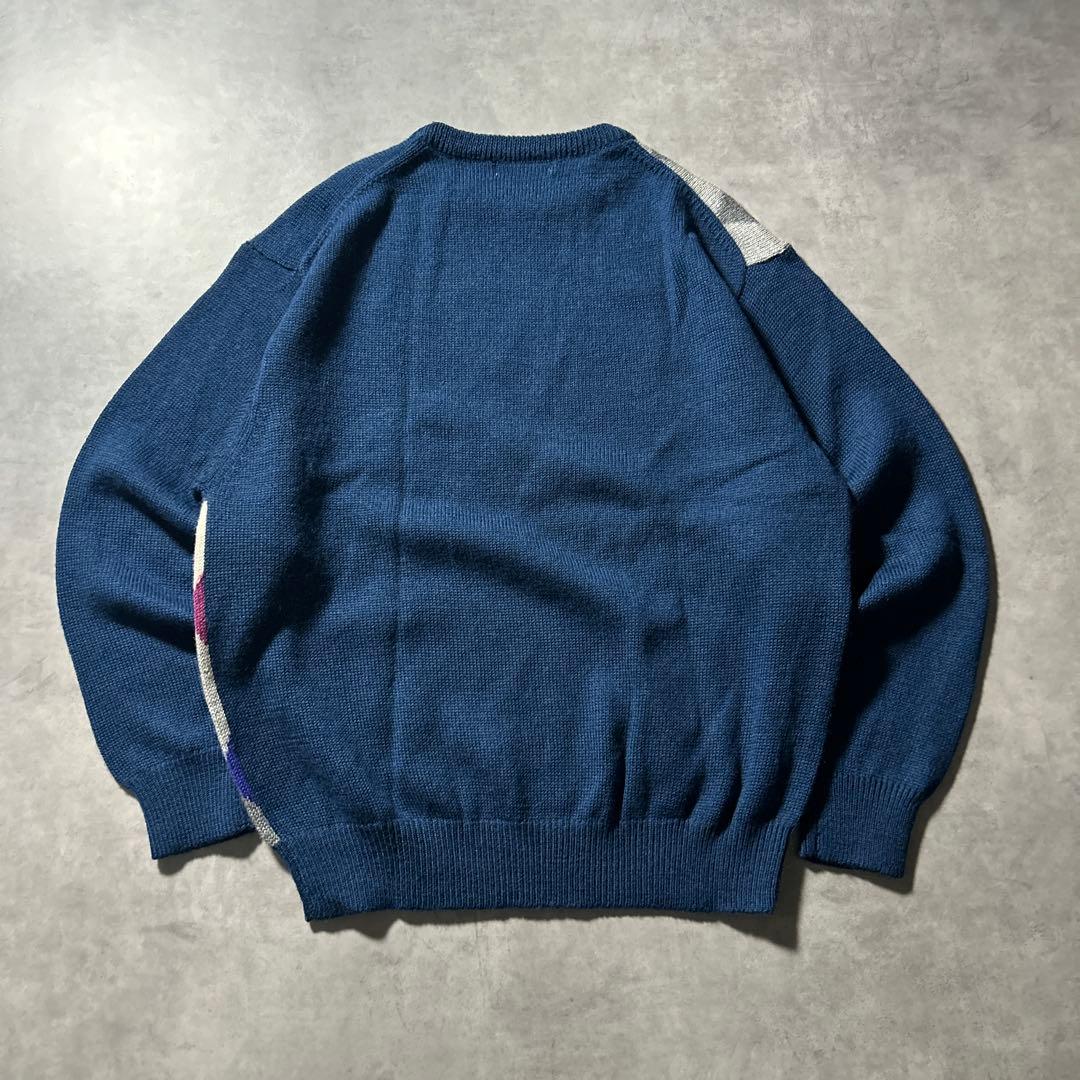 ヴィンテージ 総柄 チェック 切替 アートパターン レトロ ニット セーター