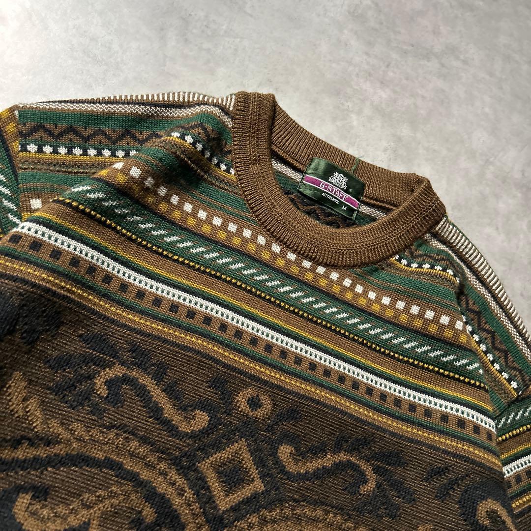 ヴィンテージ 総柄 ボーダー 幾何学 模様 レトロ ニット セーター