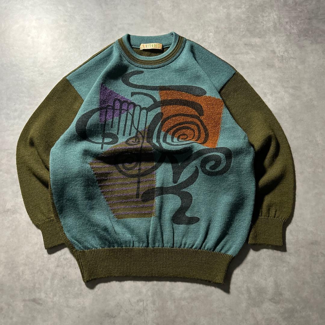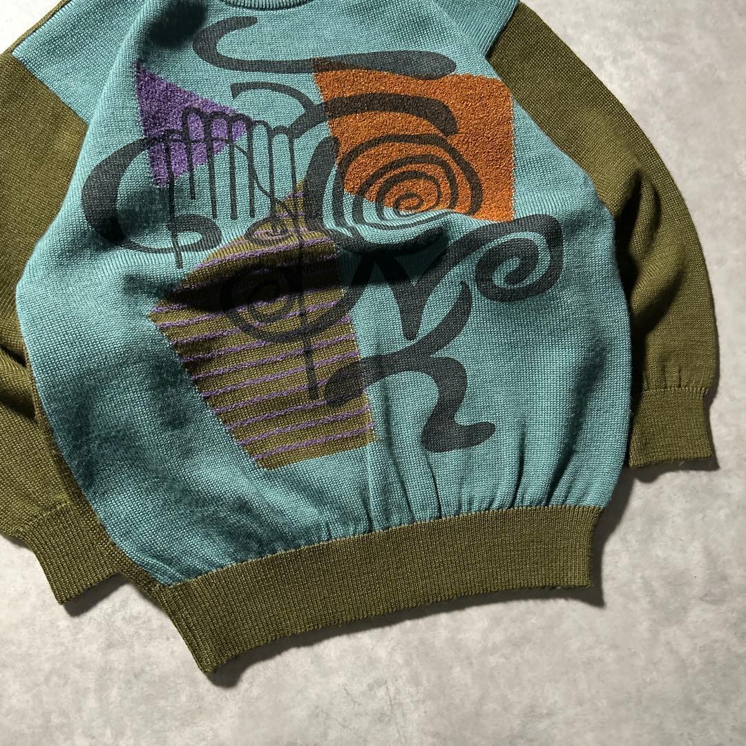 ヴィンテージ 総柄 幾何学 模様 レトロ マルチカラー ニット セーター