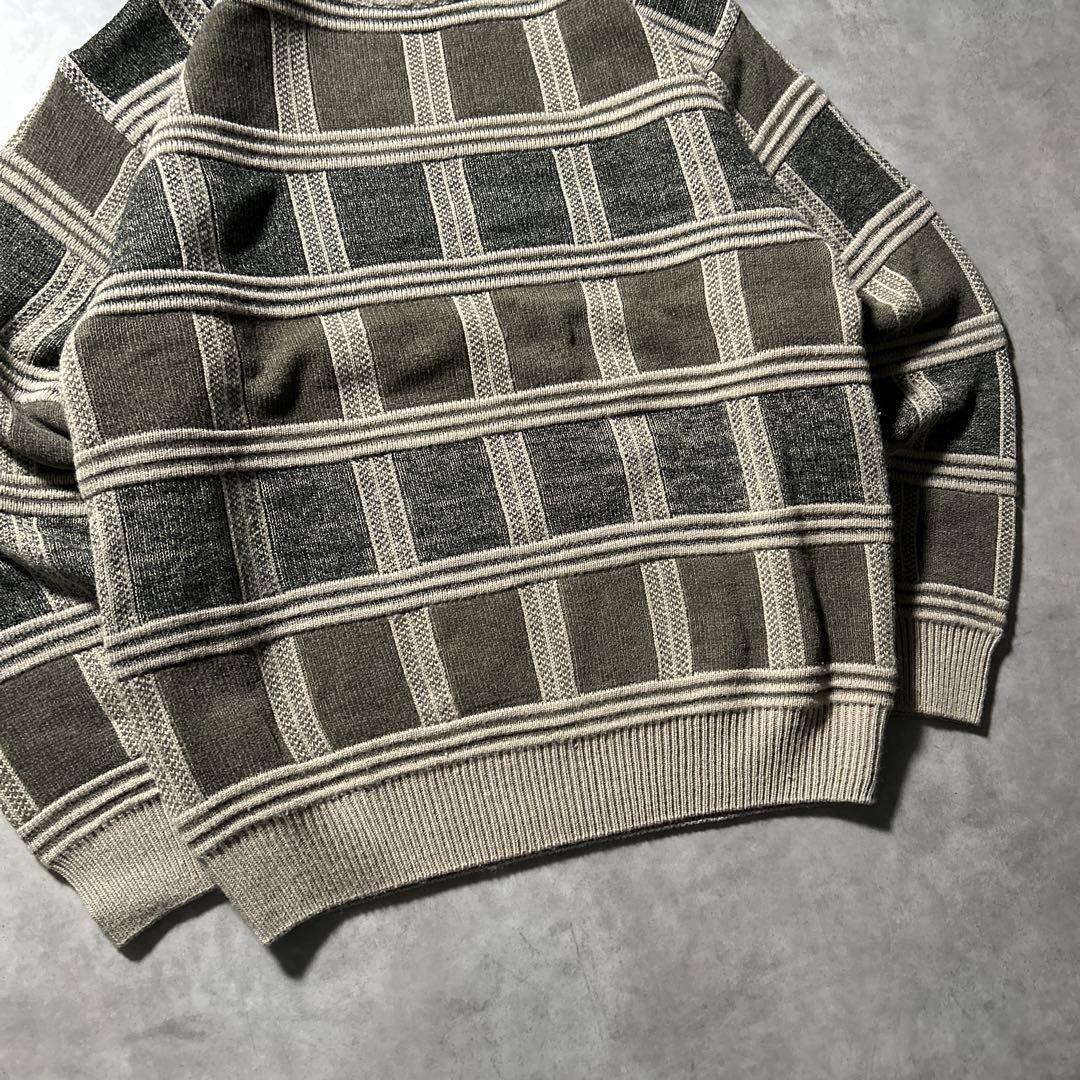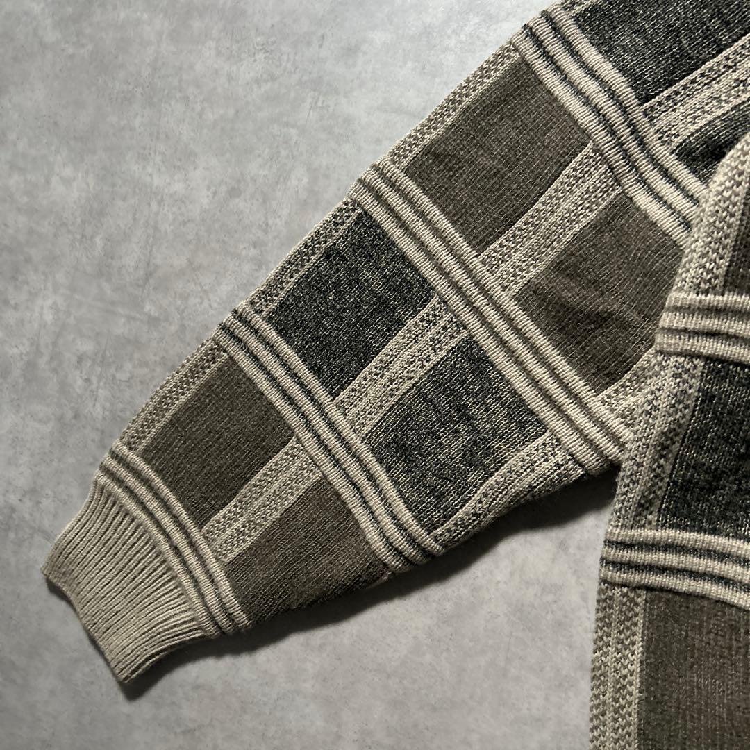 ヴィンテージ チェック 3D 肉厚 幾何学 模様 パターン ニット セーター