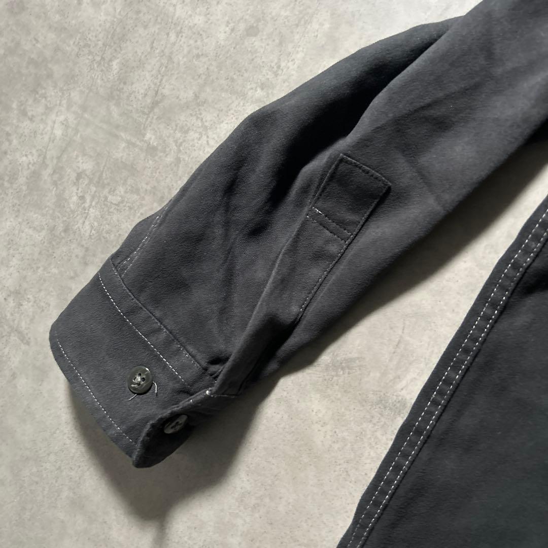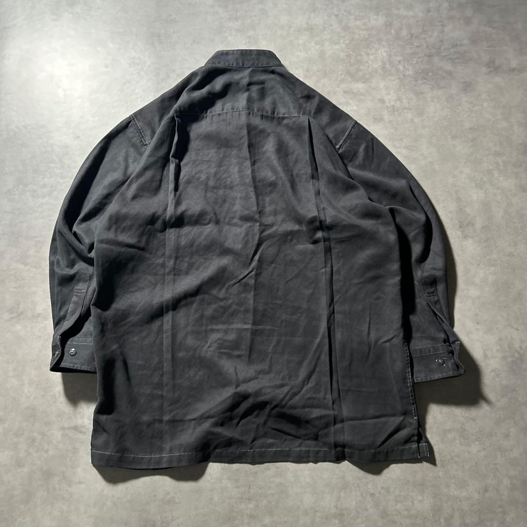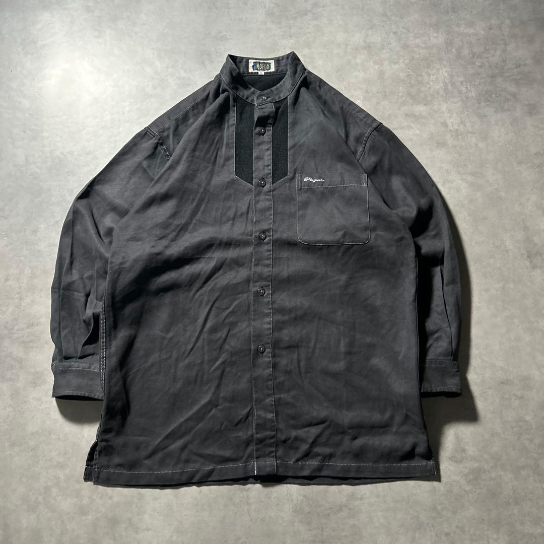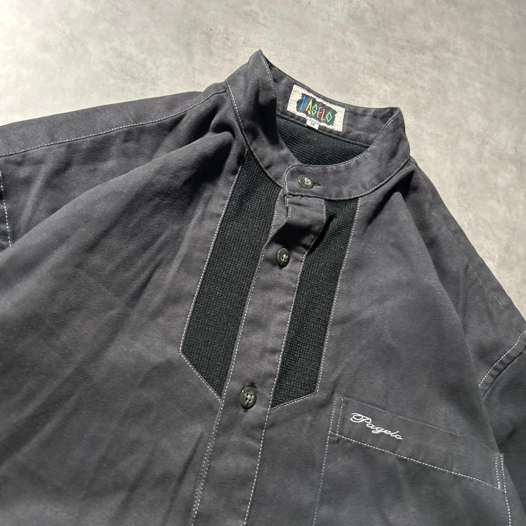 ヴィンテージ ブラック モード スエード調 バントカラー ノーカラー シャツ