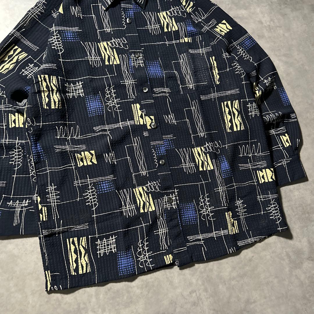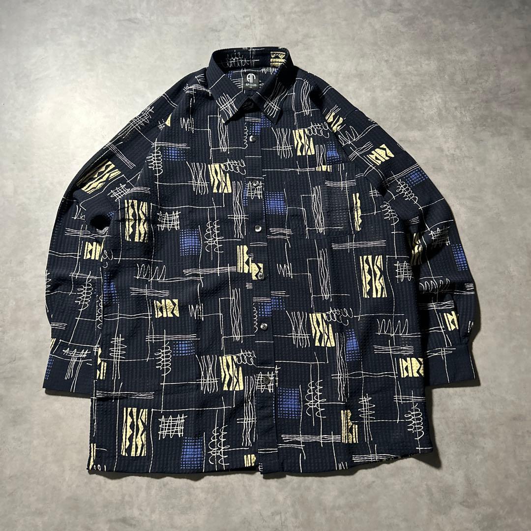 ヴィンテージ 総柄 レトロ 幾何学 模様 パターン デザイン シャツ