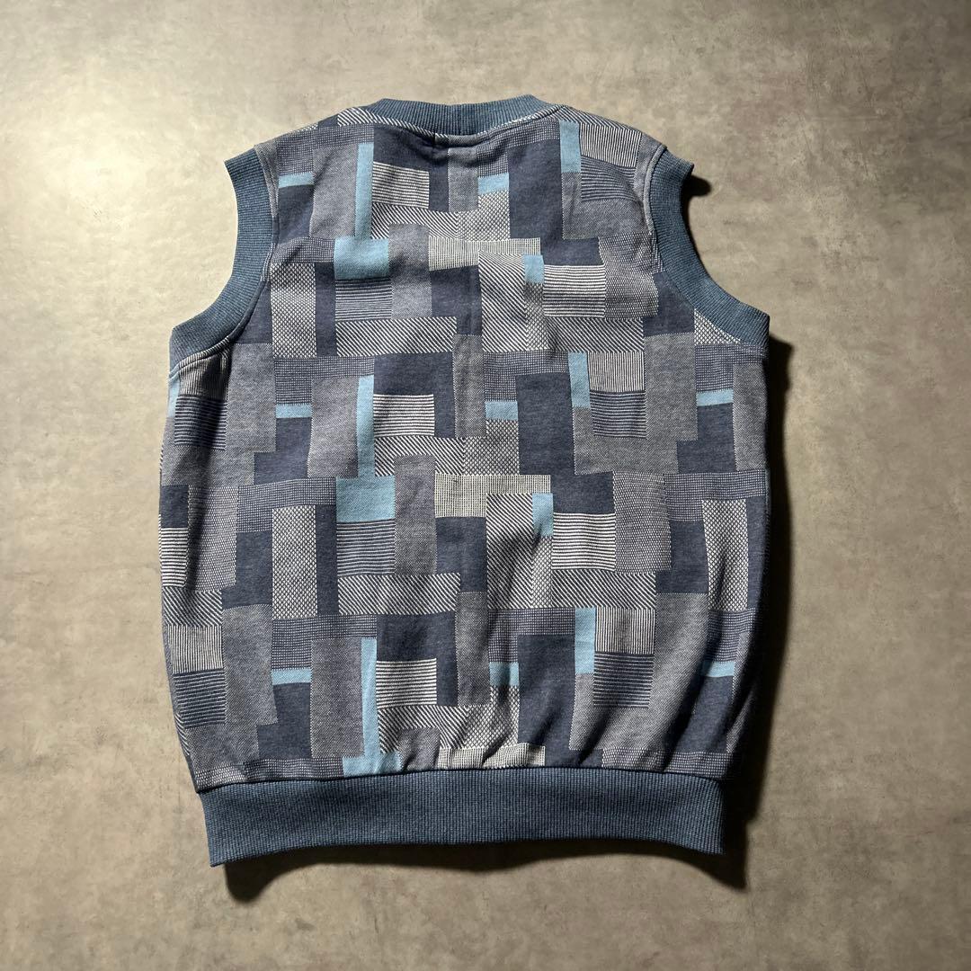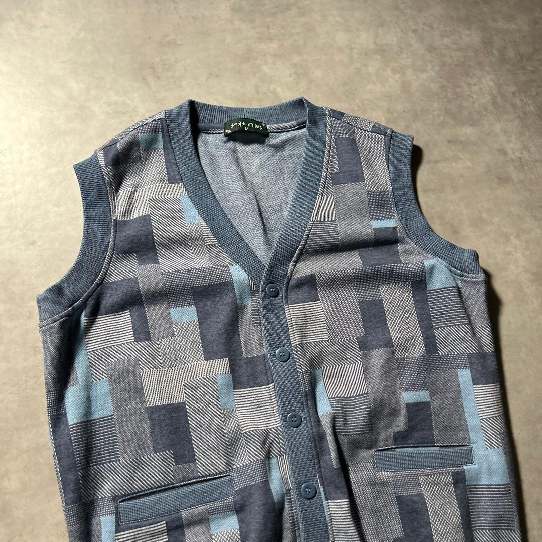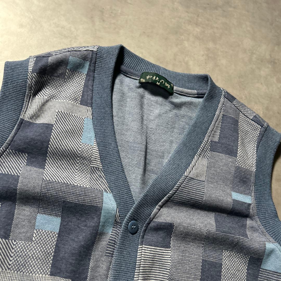 ヴィンテージ 幾何学 模様 チェック ブルー パターン ニット ベスト