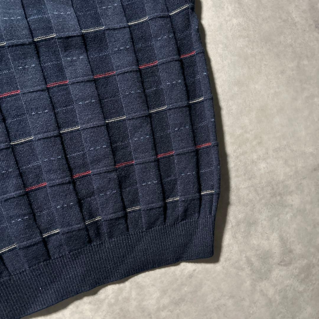 ヴィンテージ ネイビー 3D ケーブル Vネック ニット ベスト