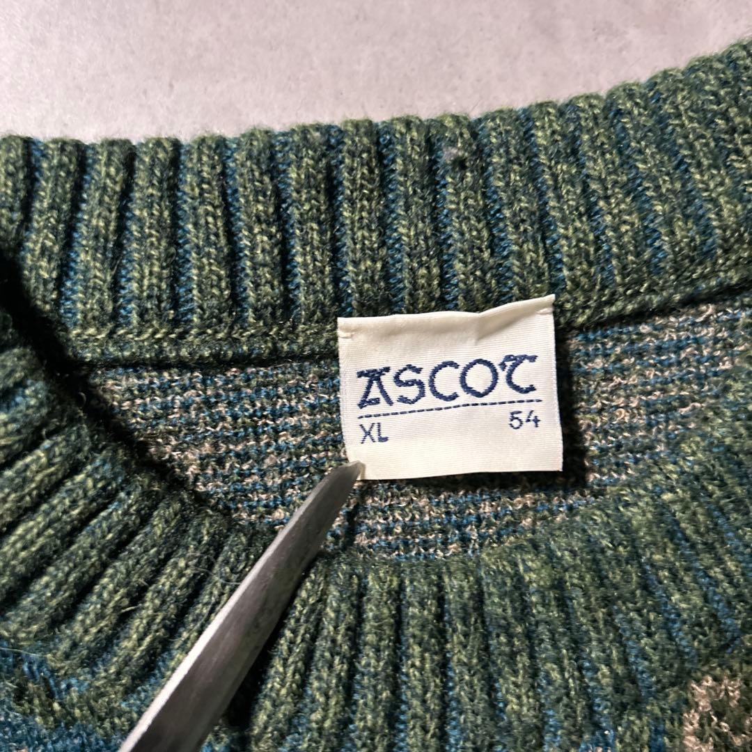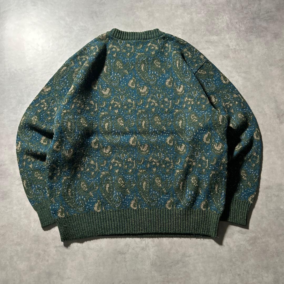 ユーロ ヴィンテージ ペイズリー 幾何学 模様 レトロ グリーン ニットセーター