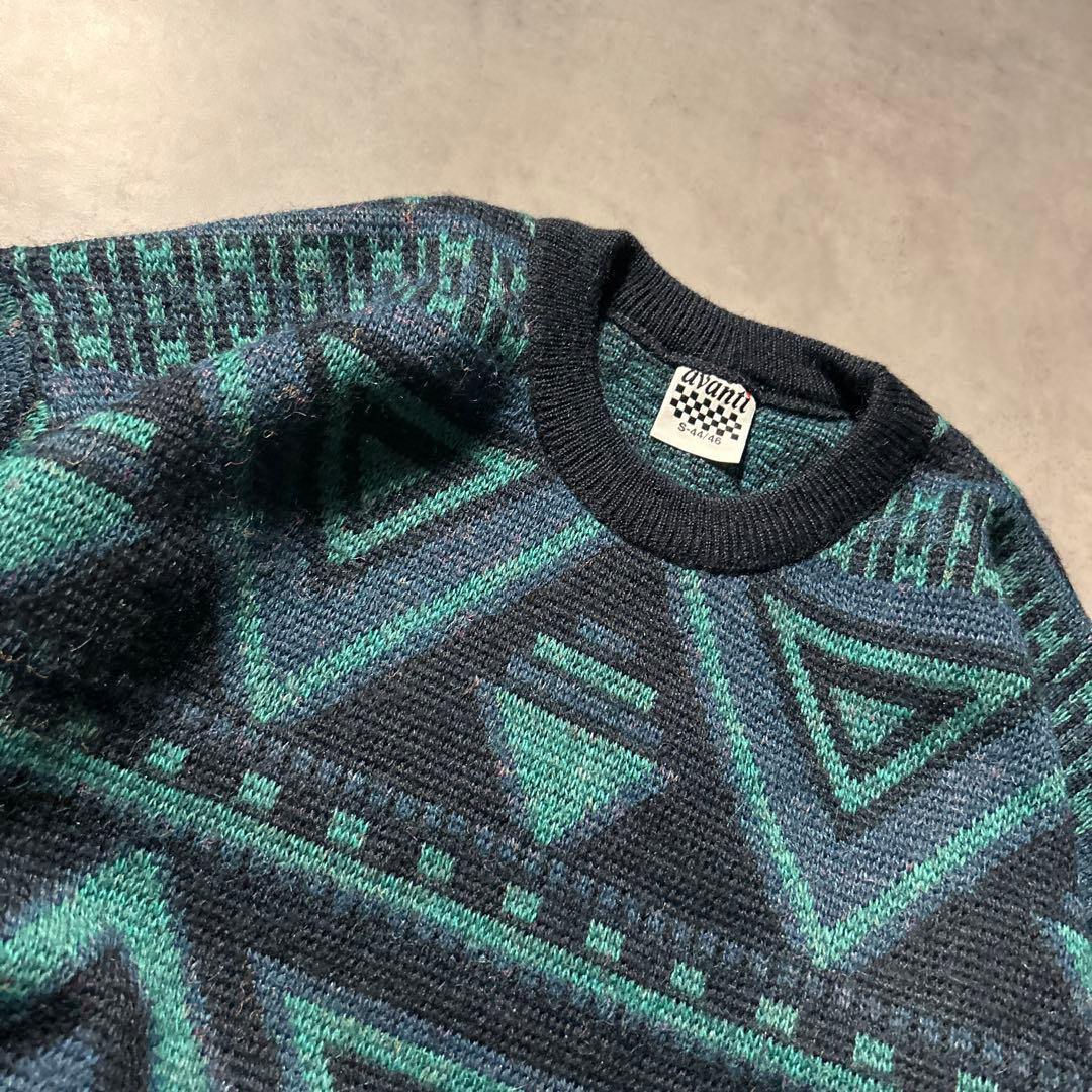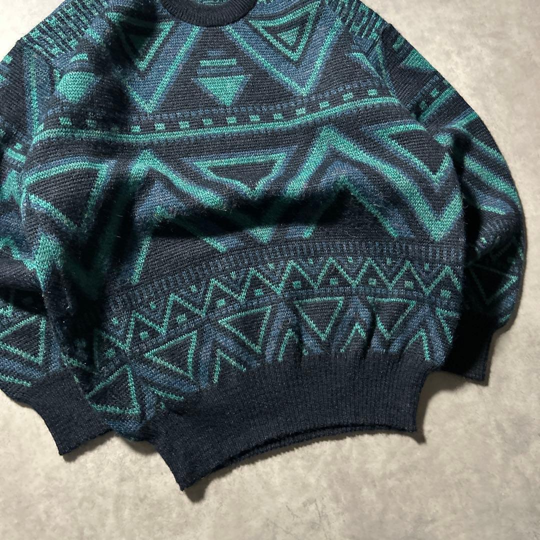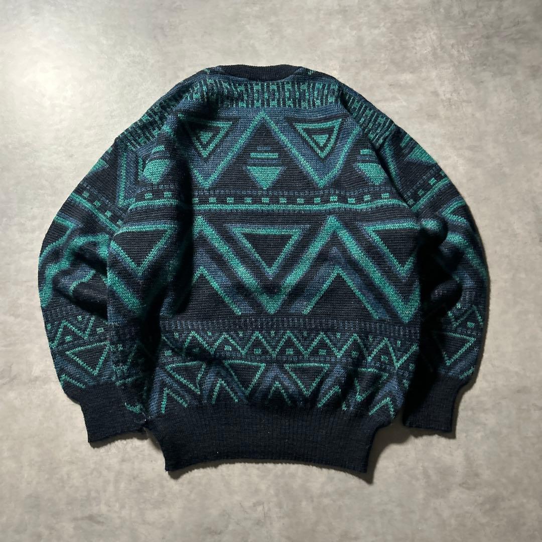 ユーロ ヴィンテージ 総柄 幾何学 模様 レトロ アートパターン ニットセーター
