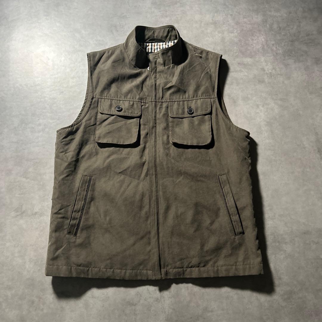 ヴィンテージ マルチポケット ジップアップ デザイン レトロ ベスト スエード調