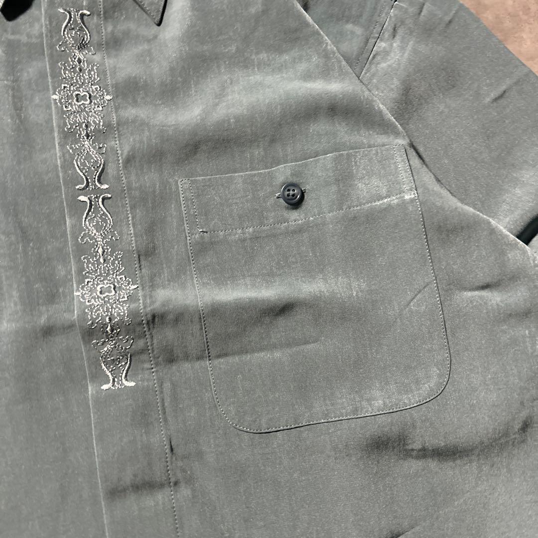 ヴィンテージ ブルー 刺繍 ロゴ レトロ デザイン レトロ ヨーロピアン シャツ