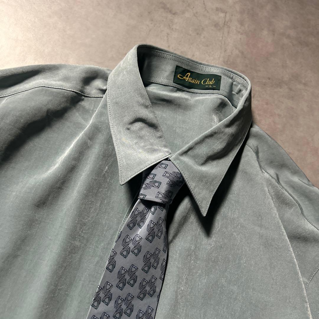 ヴィンテージ ブルー 総柄ネクタイ ワンポイントロゴ レトロ シャツ