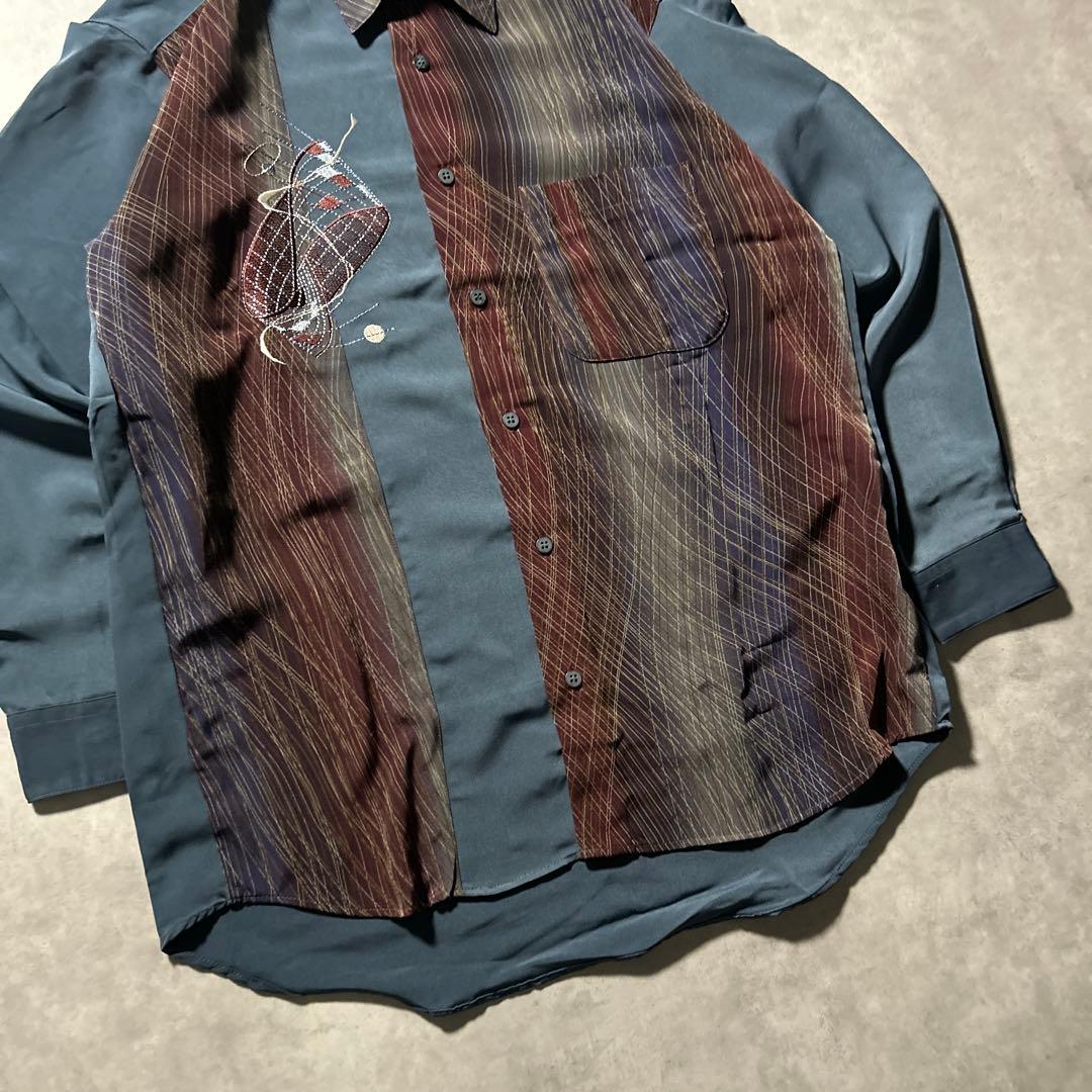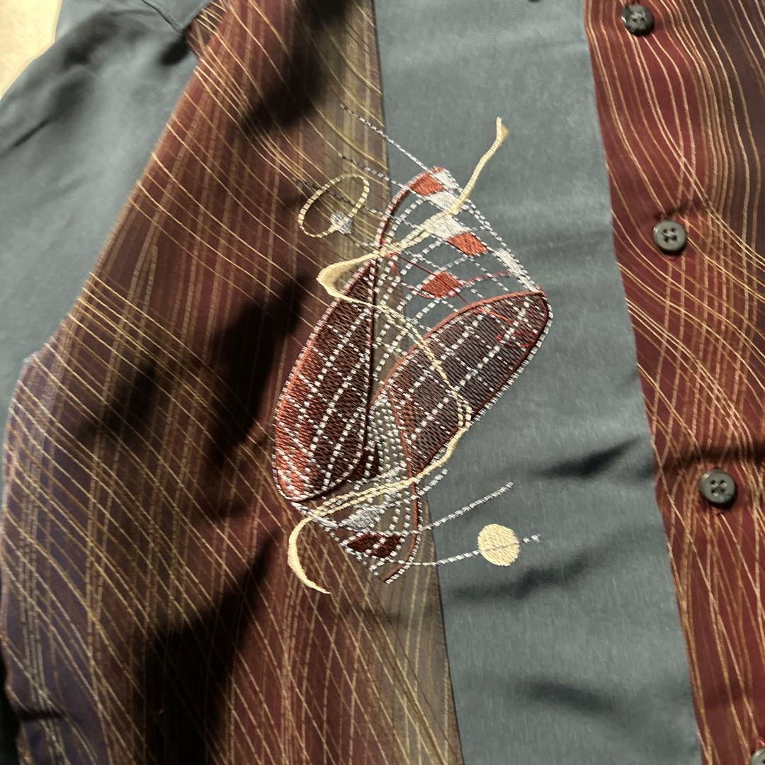 ヴィンテージ 総柄 切り替え アートパターン 刺繍 ロゴ レトロ シャツ
