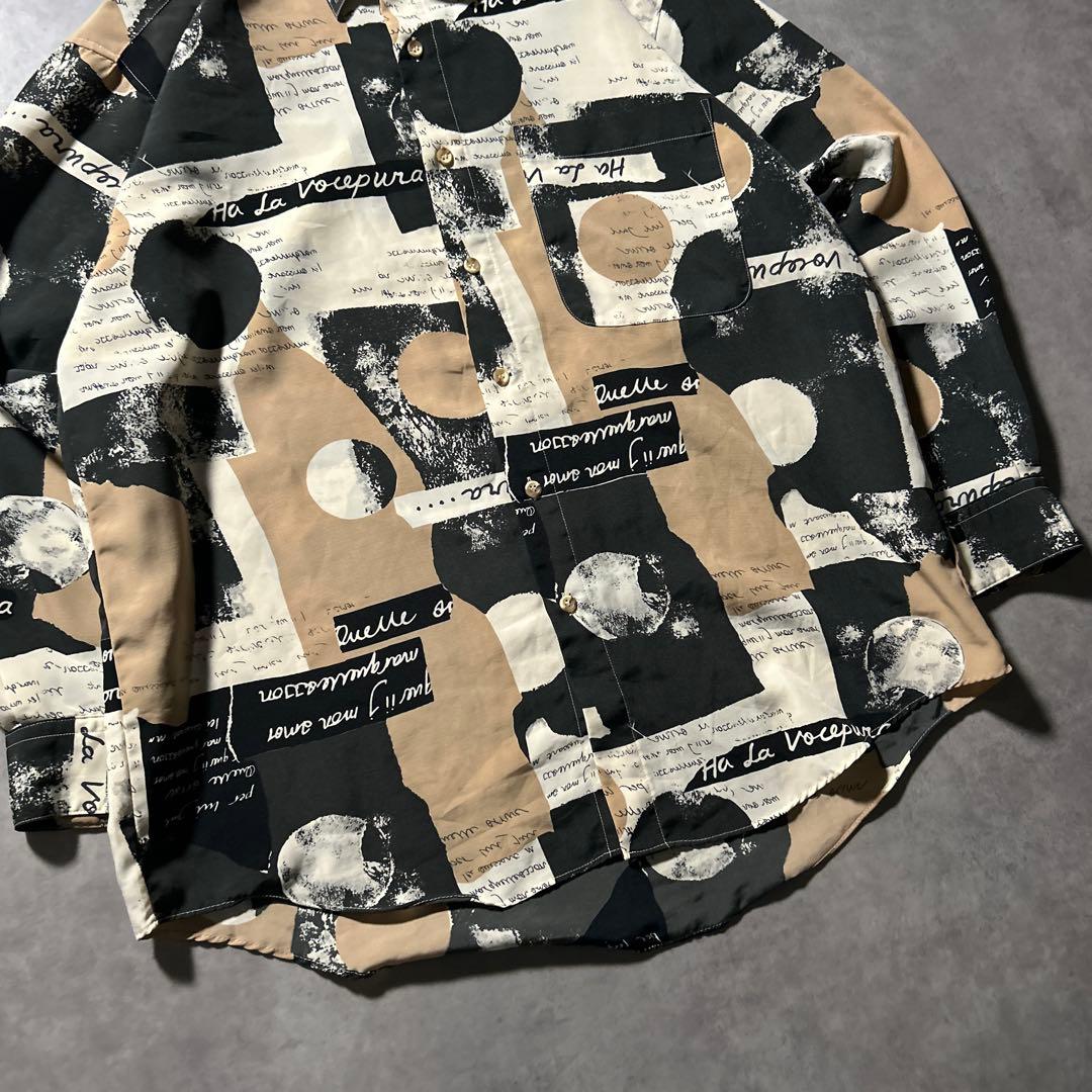 ヴィンテージ 総柄 幾何学 模様 切り替え アートパターン レトロ シャツ